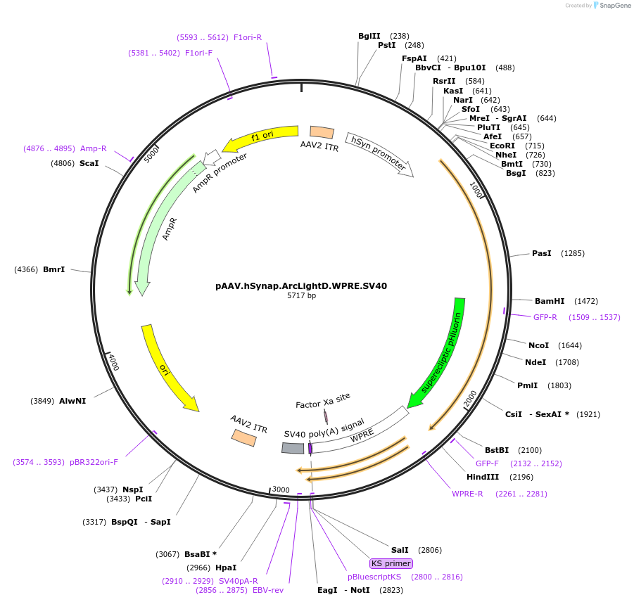PurposeAAV expression of ArcLightD driven by hSynap promoter