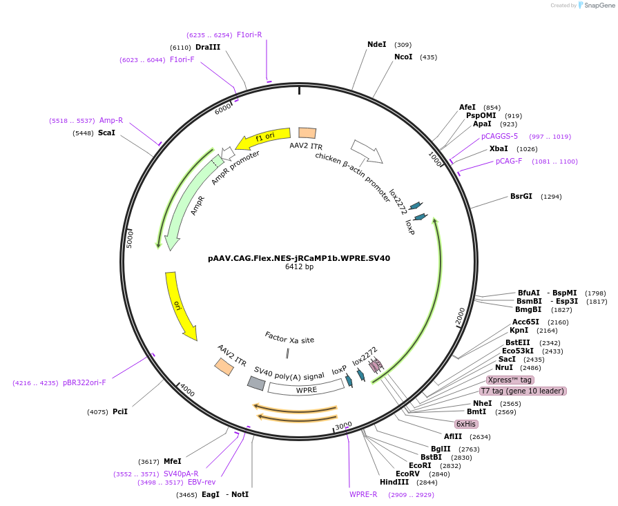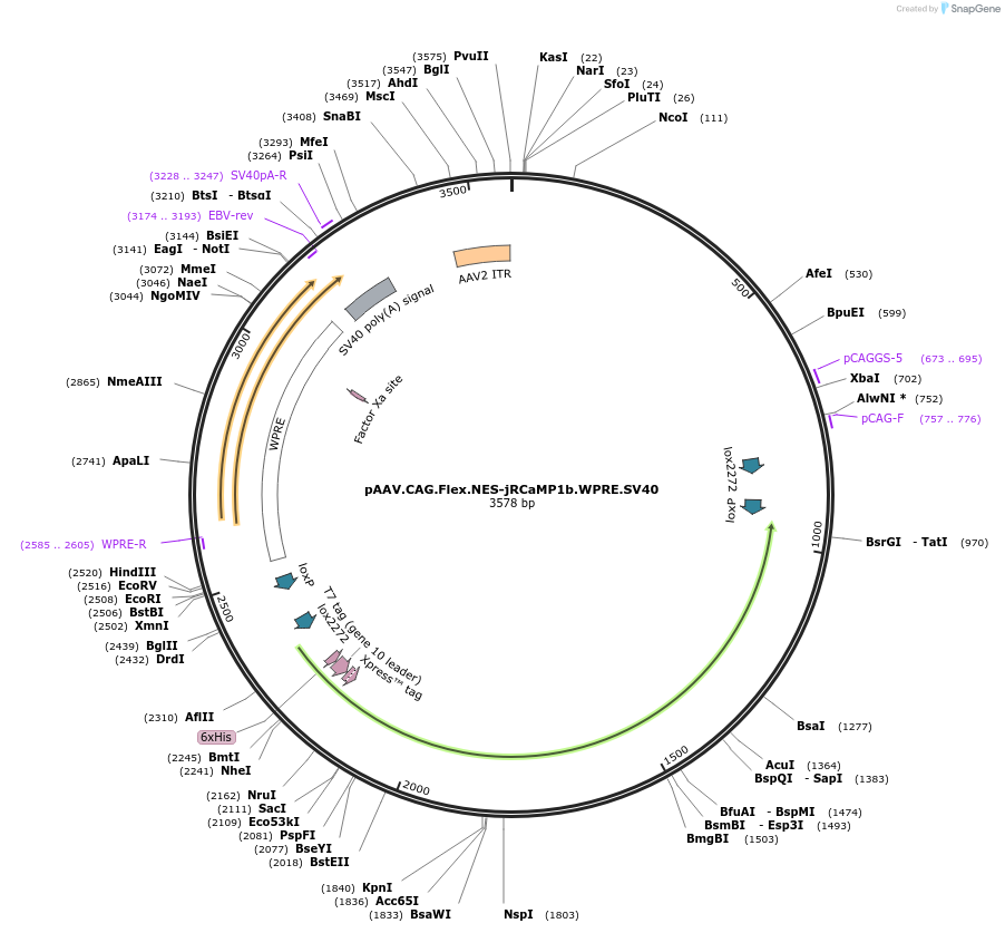 PurposeAAV expression of Cre recombinase-activated jRCaMP1b, a red fluorescent calcium sensor protein, from the CAG promoter
