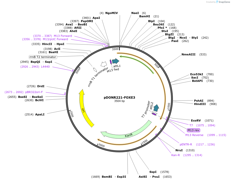 PurposeDonor Vector containing FOXE3 transcription factor, part of the Human TFome Collection