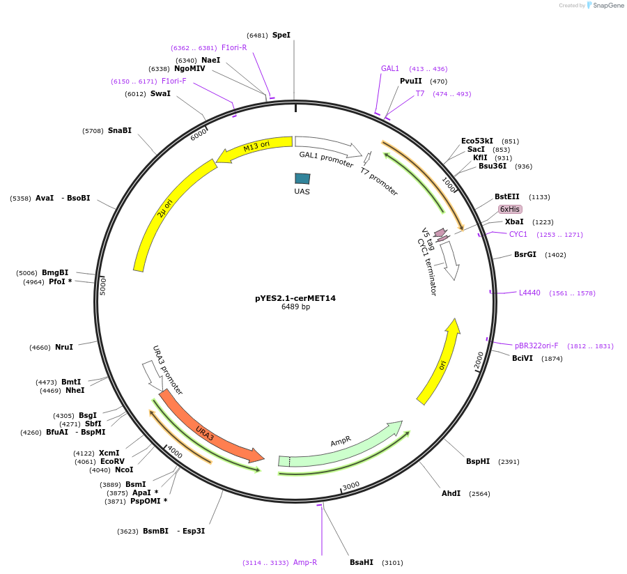 pYES2.1-cerMET14 was a gift from Clare O'Connor (Addgene plasmid # 107441 ; http://n2t.net/addgene:107441 ; RRID:Addgene_107441) -