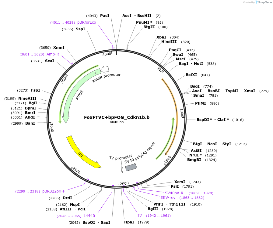 FoxFTVC+bpFOG_Cdkn1b.b was a gift from Lionel Christiaen (Addgene plasmid # 107524 ; http://n2t.net/addgene:107524 ; RRID:Addgene_107524) -
