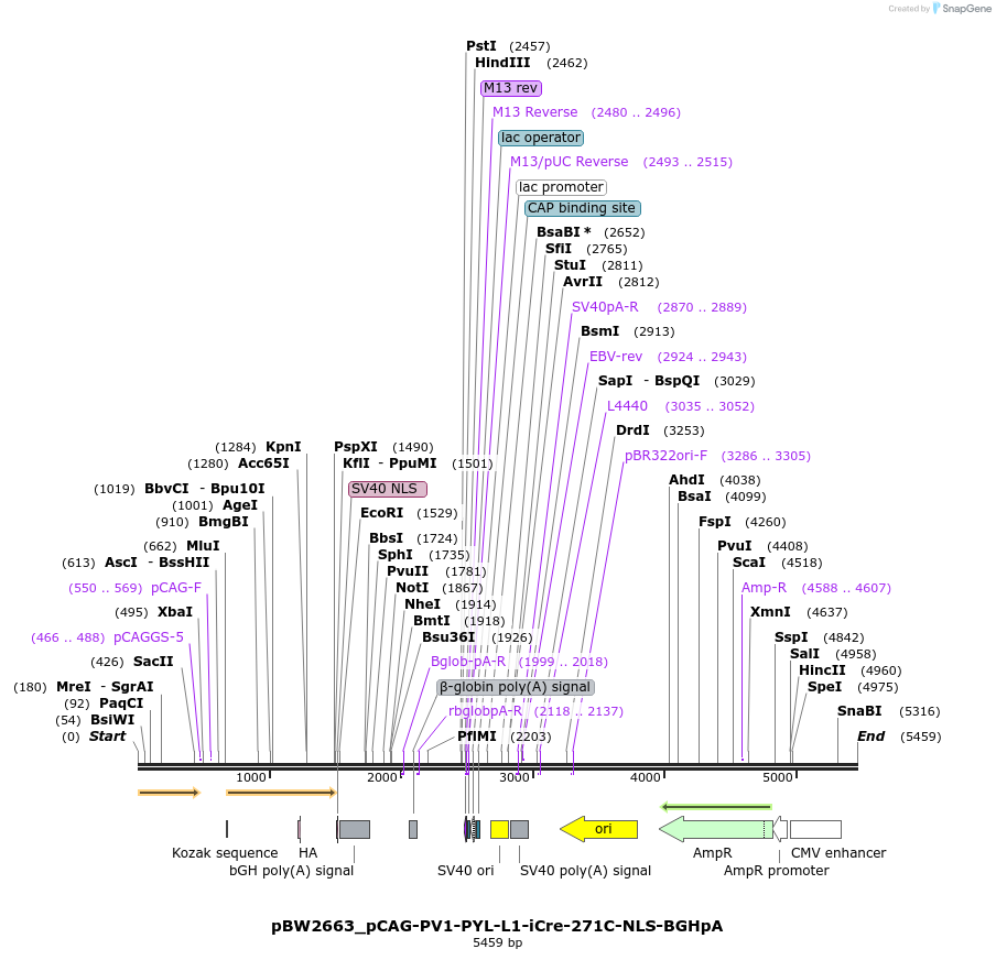 pBW2663_pCAG-PV1-PYL-L1-iCre-271C-NLS-BGHpA Sequences (2)