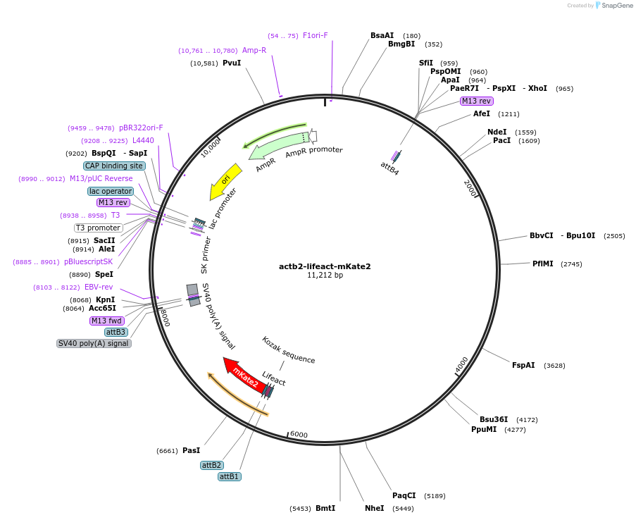 Gene/Insert namemKate2 fused to the actin binding lifeact sequence