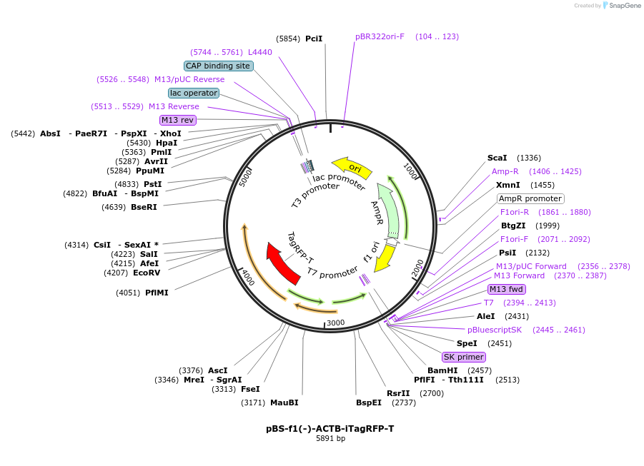 pBS-f1(-)-ACTB-iTagRFP-T was a gift from Erik Sontheimer (Addgene plasmid # 115916 ; http://n2t.net/addgene:115916 ; RRID:Addgene_115916) -