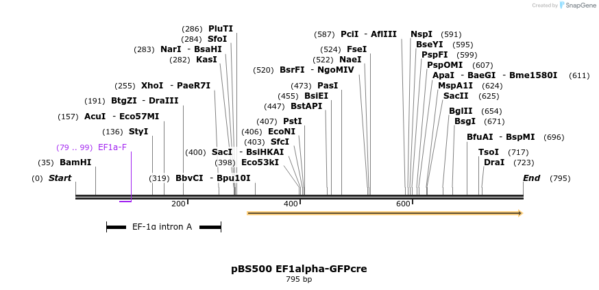 pBS500 EF1alpha-GFPcre Sequences (2)