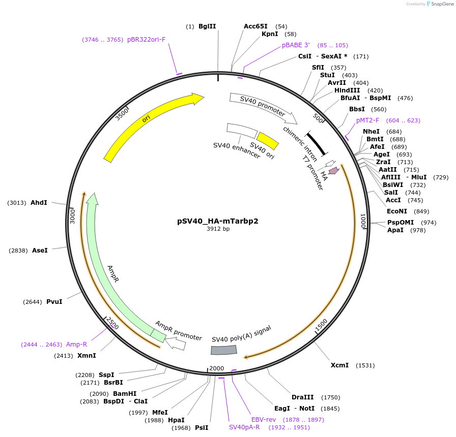 pSV40_HA-mTarbp2 was a gift from Petr Svoboda (Addgene plasmid # 120539 ; http://n2t.net/addgene:120539 ; RRID:Addgene_120539)