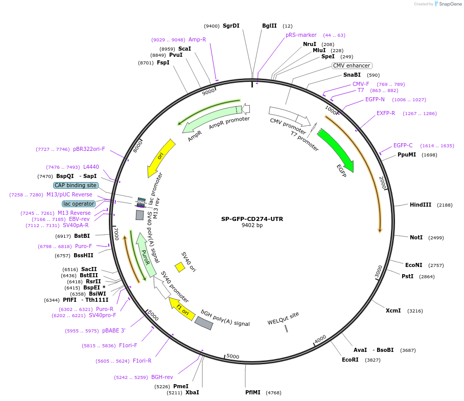 PurposeMammalian expression of GFP tagged CD274 with its own 3'UTR