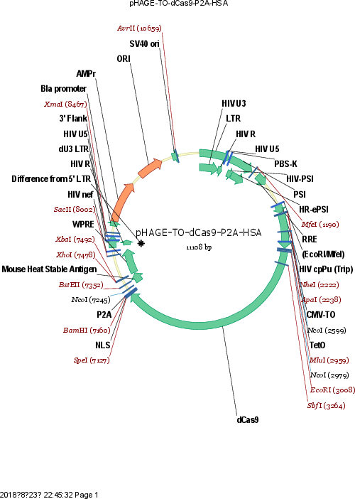 pHAGE-TO-dCas9-P2A-HSA was a gift from Thoru Pederson (Addgene plasmid # 121936 ; http://n2t.net/addgene:121936 ; RRID:Addgene_121936) -