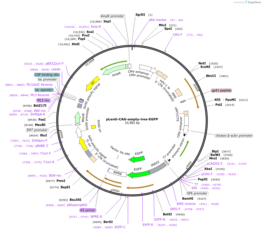 Purpose(Empty Backbone) Lentiviral expression empty vector under CAG promoter with EGFP expression
