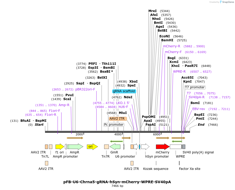 pFB-U6-Chrna5-gRNA-hSyn-mCherry-WPRE-SV40pA Sequences (2)