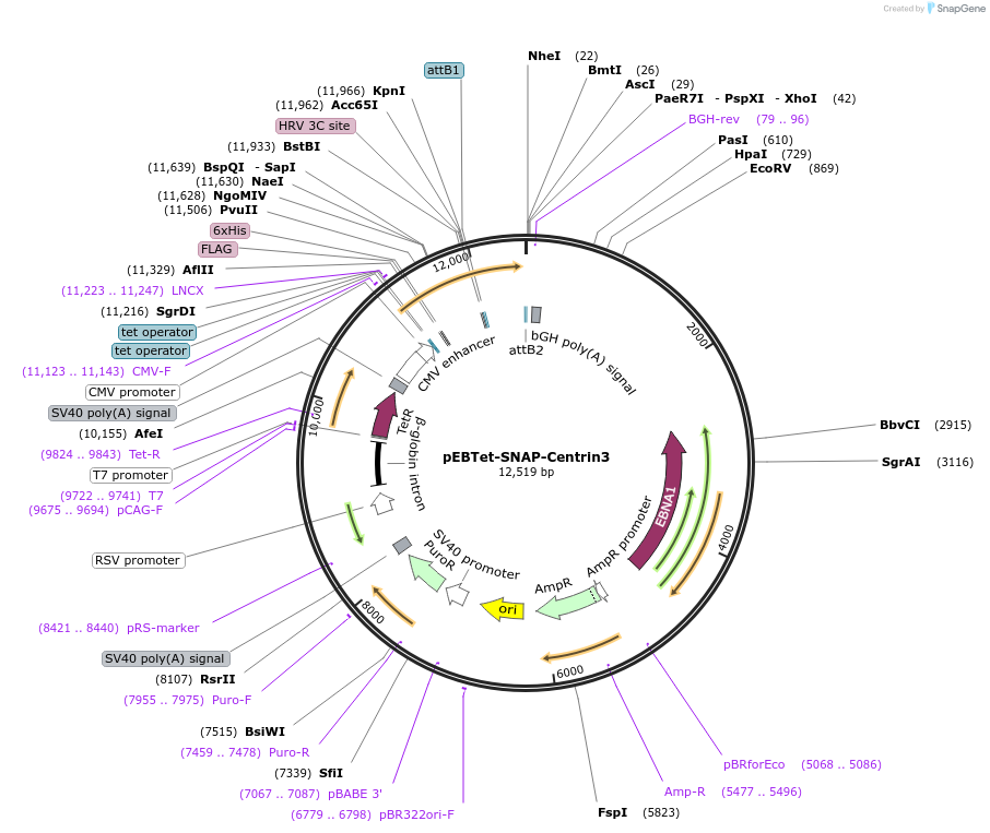 PurposeMammalian expression of the centrosomal protein Centrin3 N-terminally fused to SNAP-tag