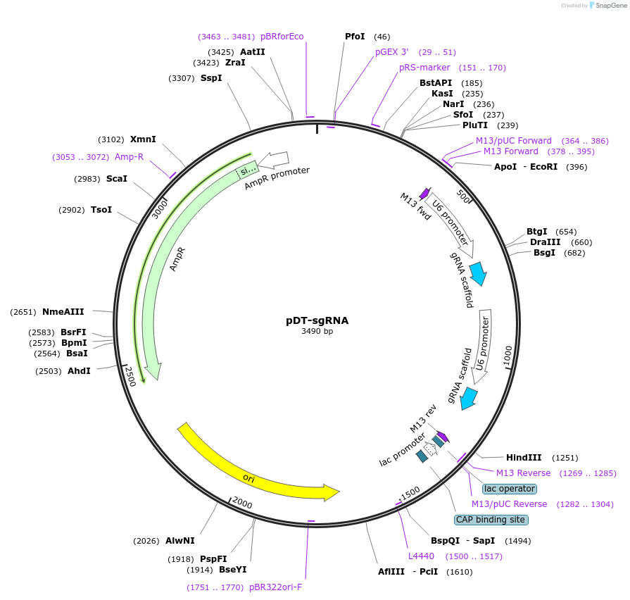 pDT-sgRNA was a gift from Xiao Wang (Addgene plasmid # 138271 ; http://n2t.net/addgene:138271 ; RRID:Addgene_138271) -
