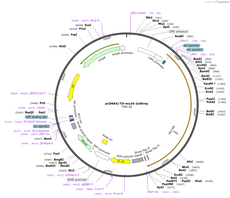 PurposeExpresses full-length mu24 with a C-terminal 2xStrep tag in mammalian cells