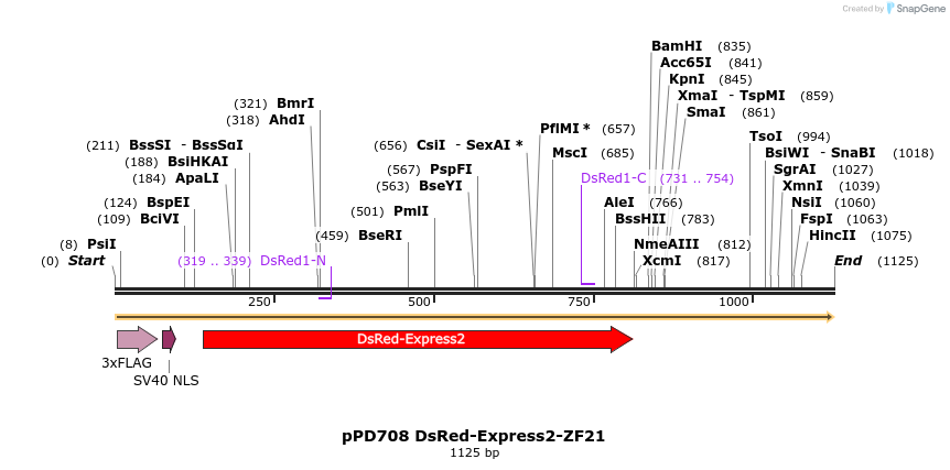 pPD708 DsRed-Express2-ZF21 Sequences (2)