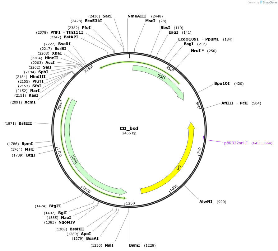 CD_bsd was a gift from Raffaela Abbriano (Addgene plasmid # 139945 ; http://n2t.net/addgene:139945 ; RRID:Addgene_139945) -
