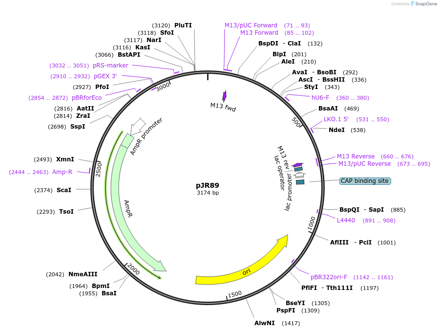 | Plasmid | 140096 | Standard format: Plasmid sent in bacteria as agar stab | 1 | $89 | |