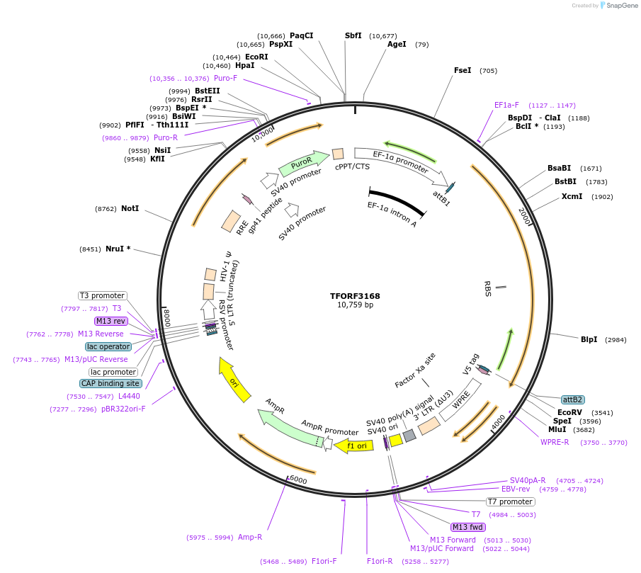 PurposeLentiviral vector for overexpressing transcription factor ORFs with unique 24-bp barcodes. Barcodes facilitate identification of transcription factors in pooled screens.