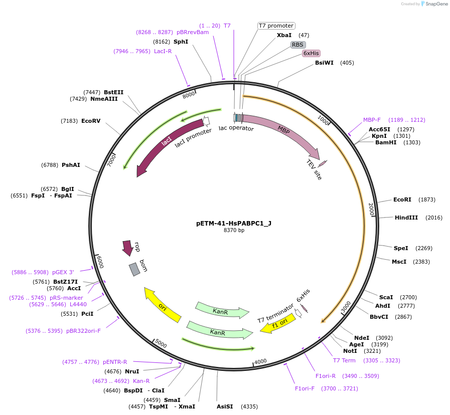 pETM-41-HsPABPC1_J was a gift from Elisa Izaurralde (Addgene plasmid # 146644 ; http://n2t.net/addgene:146644 ; RRID:Addgene_146644) -
