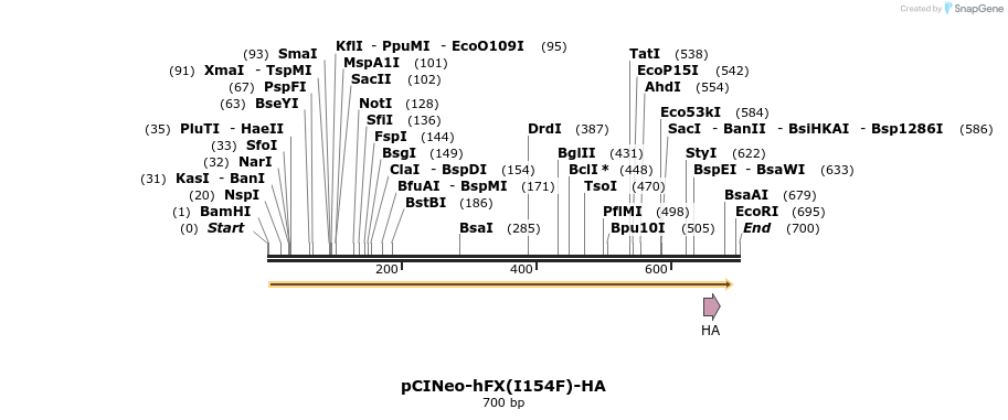 pCINeo-hFX(I154F)-HA Sequences (2)
