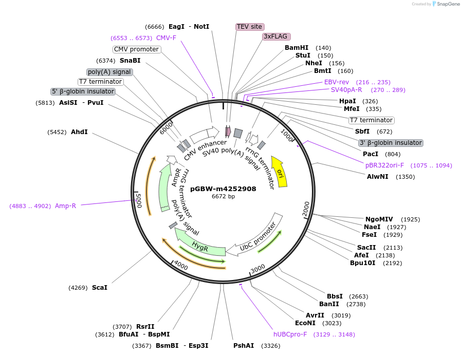 - Cleavable TEV;3xFlag (C terminal on backbone)