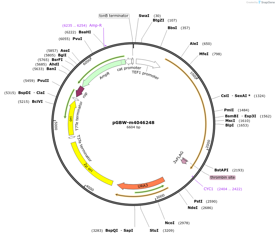 pGBW-m4046248 was a gift from Ginkgo Bioworks & Benjie Chen (Addgene plasmid # 153865 ; http://n2t.net/addgene:153865 ; RRID:Addgene_153865)