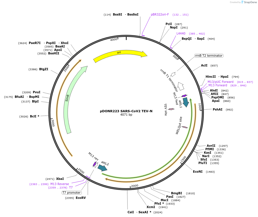 pDONR223 SARS-CoV2 TEV-N was a gift from Fritz Roth (Addgene plasmid # 154424 ; http://n2t.net/addgene:154424 ; RRID:Addgene_154424) -