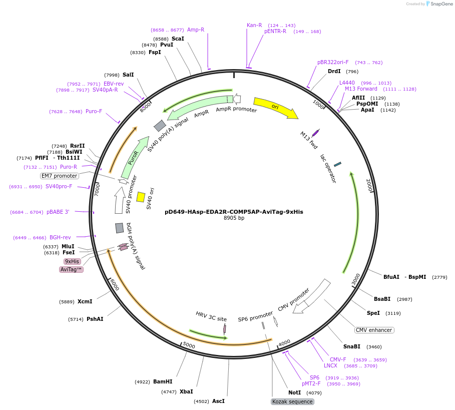 pD649-HAsp-EDA2R-COMP5AP-AviTag-9xHis