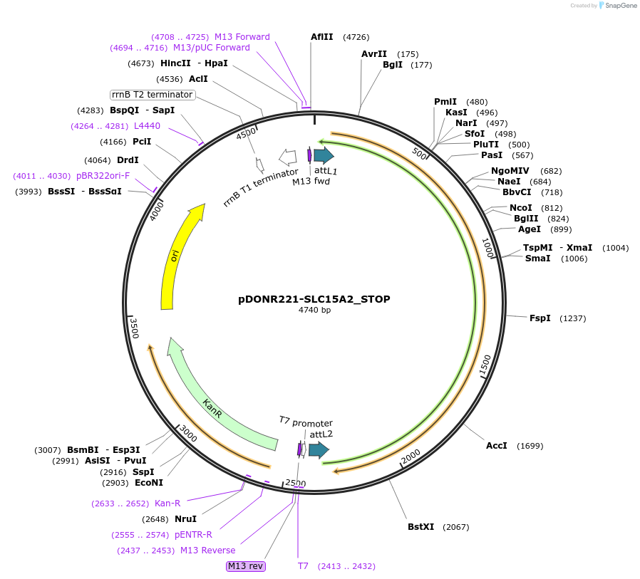 pDONR221-SLC15A2_STOP was a gift from RESOLUTE Consortium & Giulio Superti-Furga (Addgene plasmid # 161052 ; http://n2t.net/addgene:161052 ; RRID:Addgene_161052) -