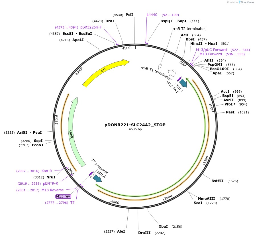 pDONR221-SLC24A2_STOP was a gift from RESOLUTE Consortium & Giulio Superti-Furga (Addgene plasmid # 161132 ; http://n2t.net/addgene:161132 ; RRID:Addgene_161132) -