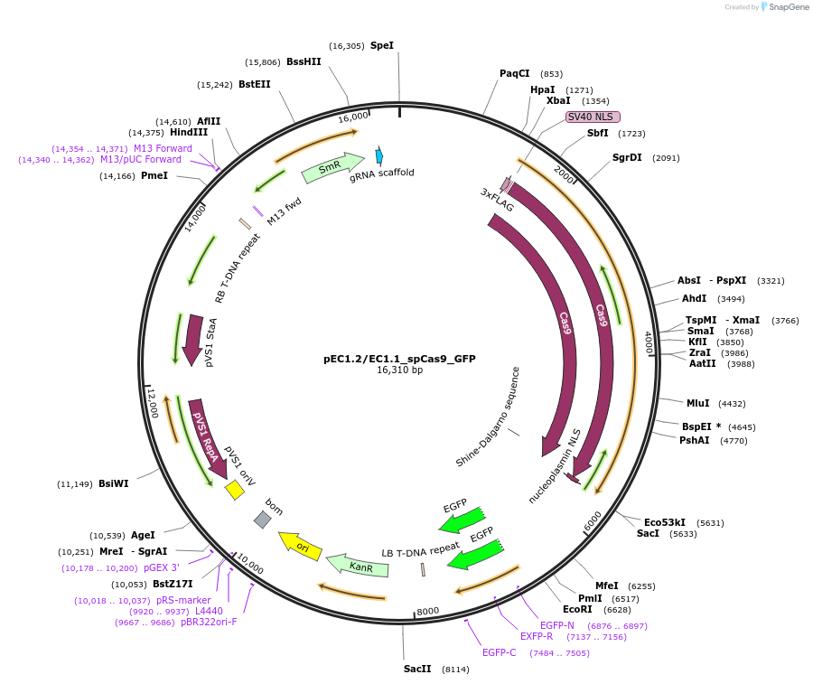 Purpose(Empty Backbone) CRISPR plasmid with spCas9 expressed under egg cell promoter - GFP seed selection