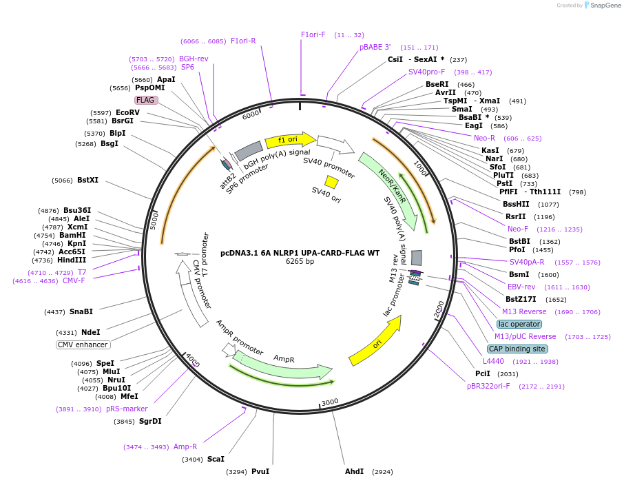 pcDNA3.1 6A NLRP1 UPA-CARD-FLAG WT