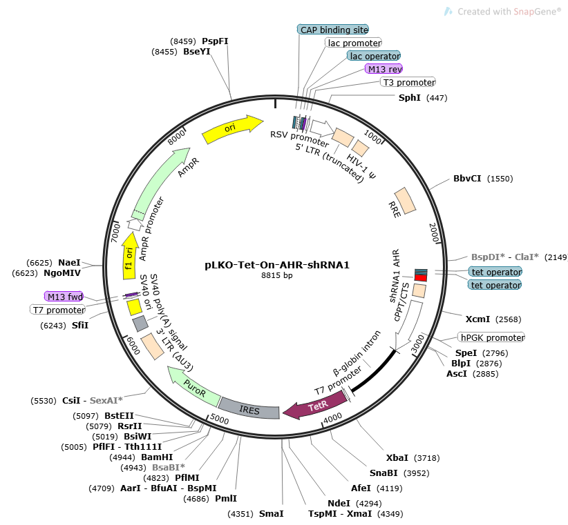 pLKO-Tet-On-AHR-shRNA1 was a gift from Roland Friedel (Addgene plasmid # 166889 ; http://n2t.net/addgene:166889 ; RRID:Addgene_166889) -