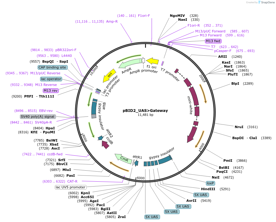 Purpose(Empty Backbone) Drosophila transgene expression under UAS/Gal4 control, PhiC31 transgenesis