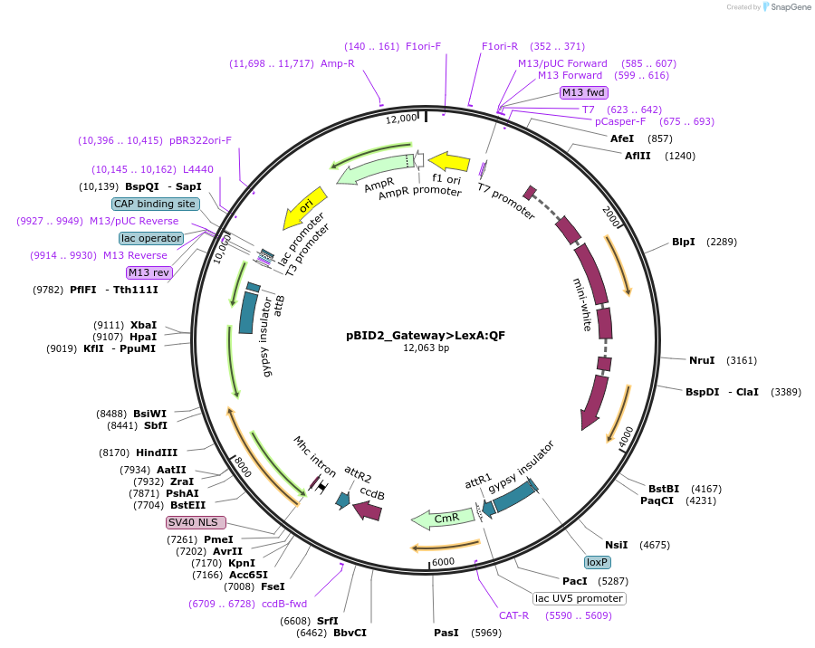 Purpose(Empty Backbone) Drosophila LexA:QF expression under introduced sequence control, PhiC31 transgenesis