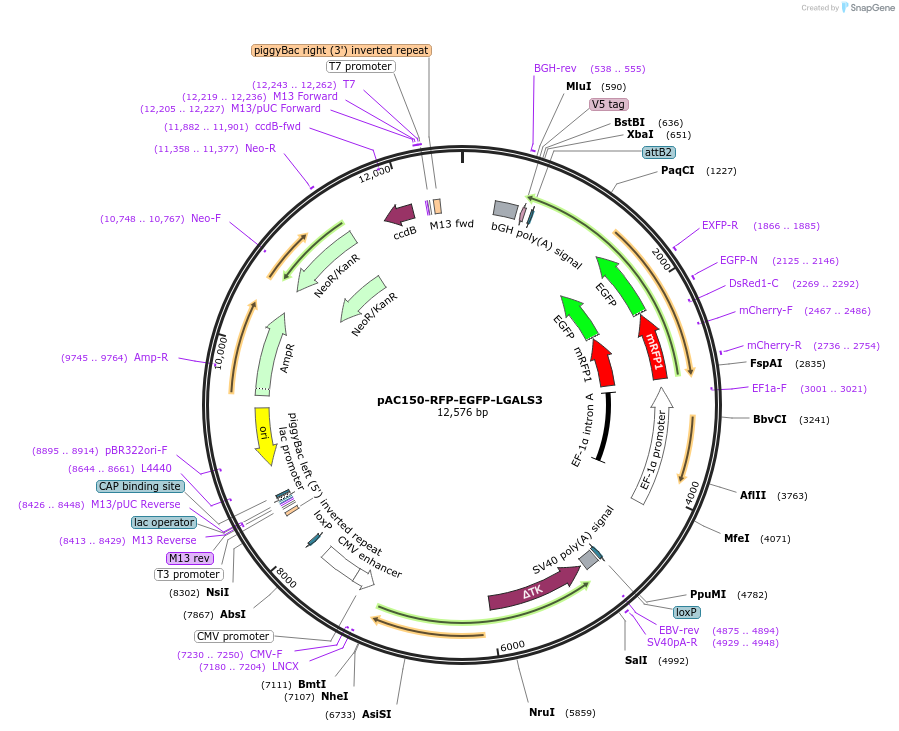 PurposePiggyBac Vector expressing GFP-RFP-LGALS3