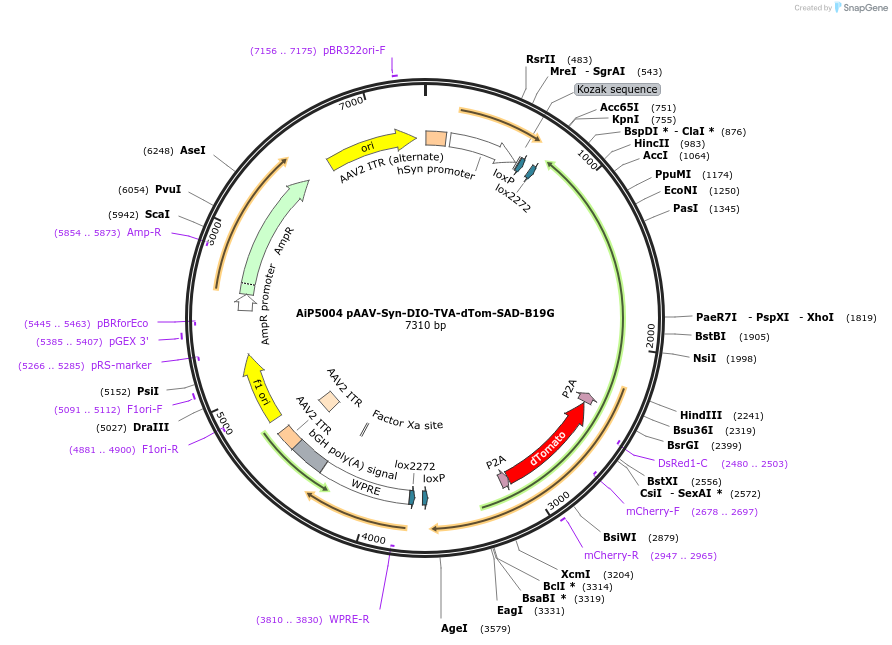 AiP5004 pAAV-Syn-DIO-TVA-dTom-SAD-B19G Sequences (2)