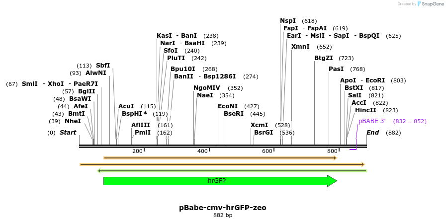 pBabe-cmv-hrGFP-zeo Sequences (1)