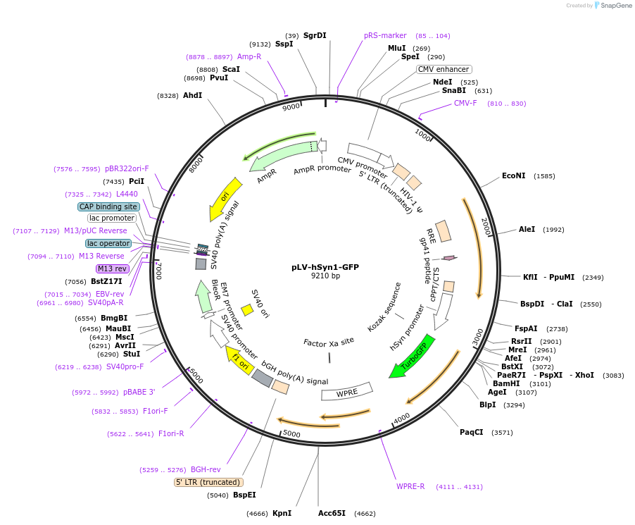 PurposeEncodes a GFP driven by human synapsin I promoter