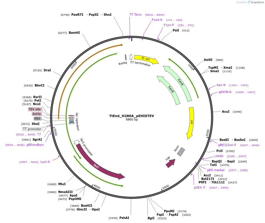 TtEnd_H280A_pEHISTEV was a gift from James Naismith (Addgene plasmid # 179735 ; http://n2t.net/addgene:179735 ; RRID:Addgene_179735) -