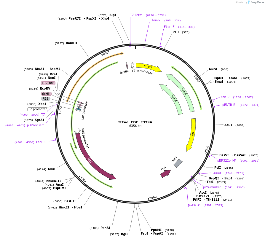 PurposeTtEnd_CDC_E329A expresses TtEnd_CDC_pEHISTEV, in which Glu329 has been mutated with Ala329.
