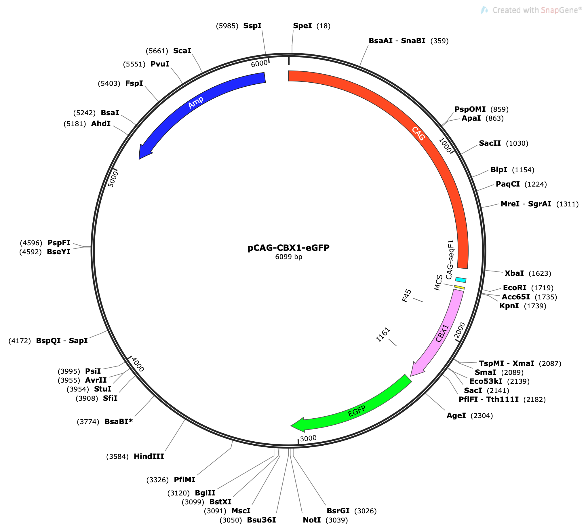 pCAG-HP1β-eGFP was a gift from Andrew Newman (Addgene plasmid # 179925 ; http://n2t.net/addgene:179925 ; RRID:Addgene_179925) -