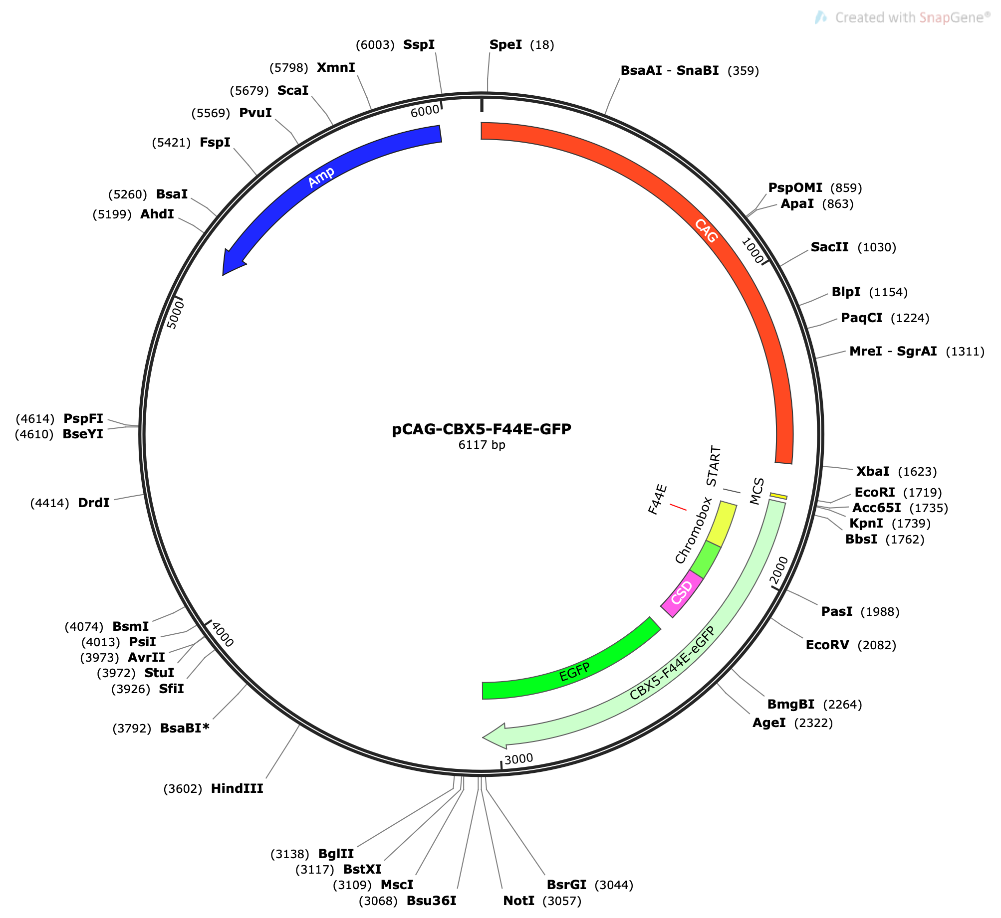 PurposeC terminal fusion of EGFP to mouse HP1α (Cbx5) containing F44E mutation
