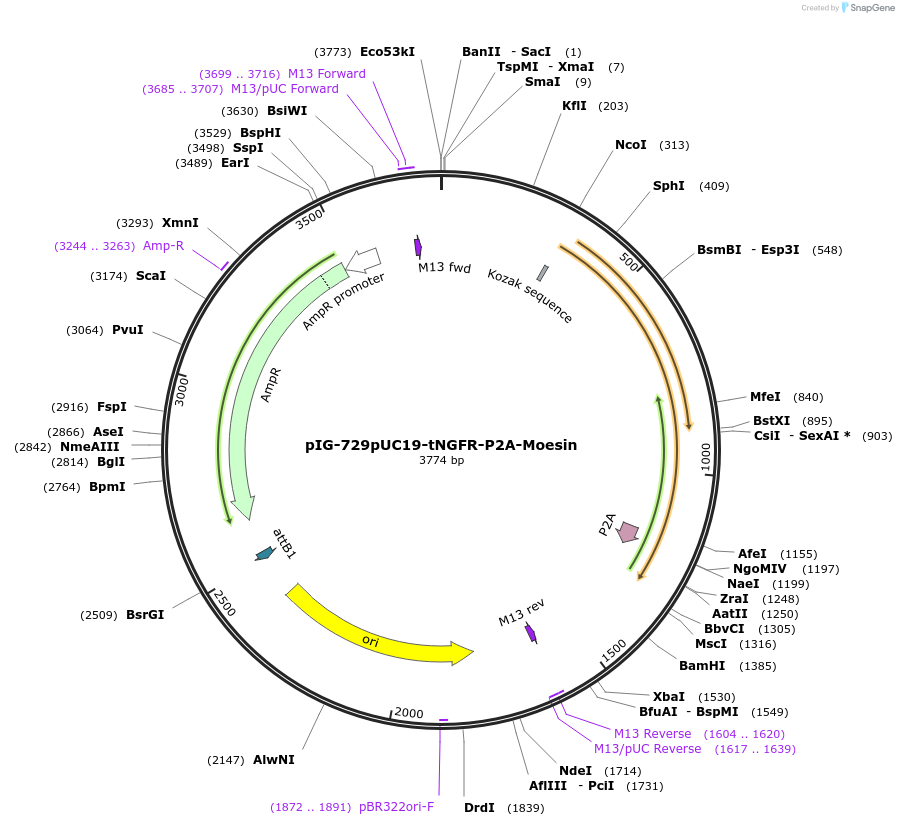 pIG-729pUC19-tNGFR-P2A-Moesin