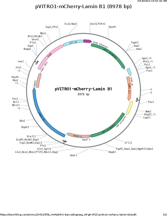 pVITRO1-mCherry-LaminB1 was a gift from Chuan-Hsiang Huang (Addgene plasmid # 186348 ; http://n2t.net/addgene:186348 ; RRID:Addgene_186348) -