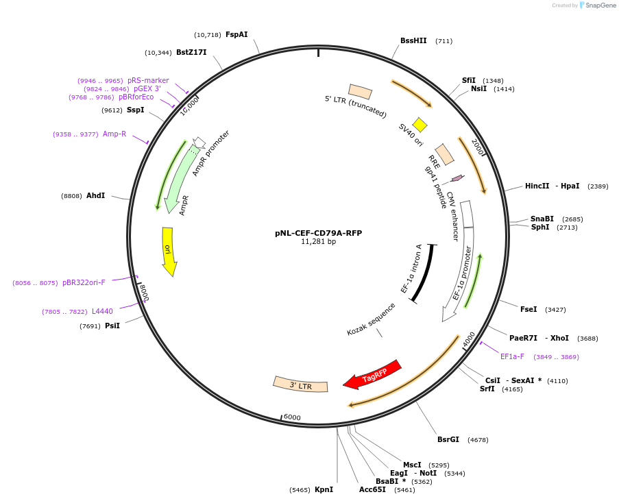 pNL-CEF-CD79A-RFP was a gift from Hermann Eibel (Addgene plasmid # 187003 ; http://n2t.net/addgene:187003 ; RRID:Addgene_187003) -