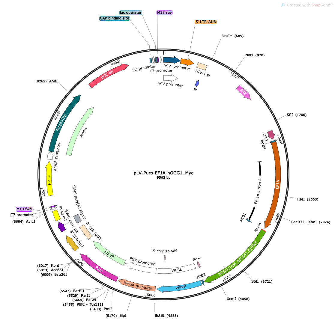pLV-Puro-EF1A-hOGG1/Myc was a gift from Robert Sobol (Addgene plasmid # 187034 ; http://n2t.net/addgene:187034 ; RRID:Addgene_187034)