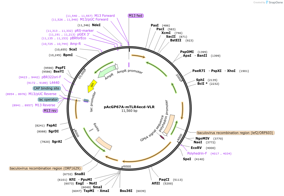 PurposeBaculovirus protein expression of mouse TLR4 (residues 26–544) fused with hagfish variable lymphocyte receptor (VLR) (residues 126–200)