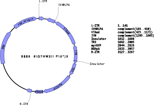 PurposeAAV vector, high-level expression of EGFP with a myristoylation/palmitoylation signal derived from Fyn N-terminus (myrGFP) in neuronal cells