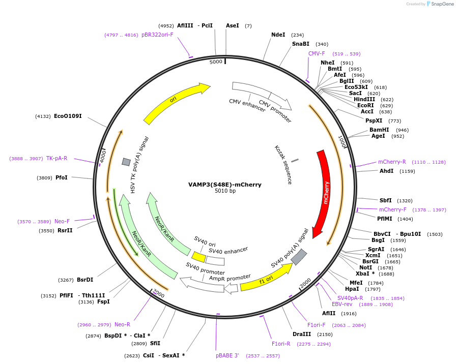 PurposeExpresses S48E phosphomimetic VAMP3 fused to mCherry