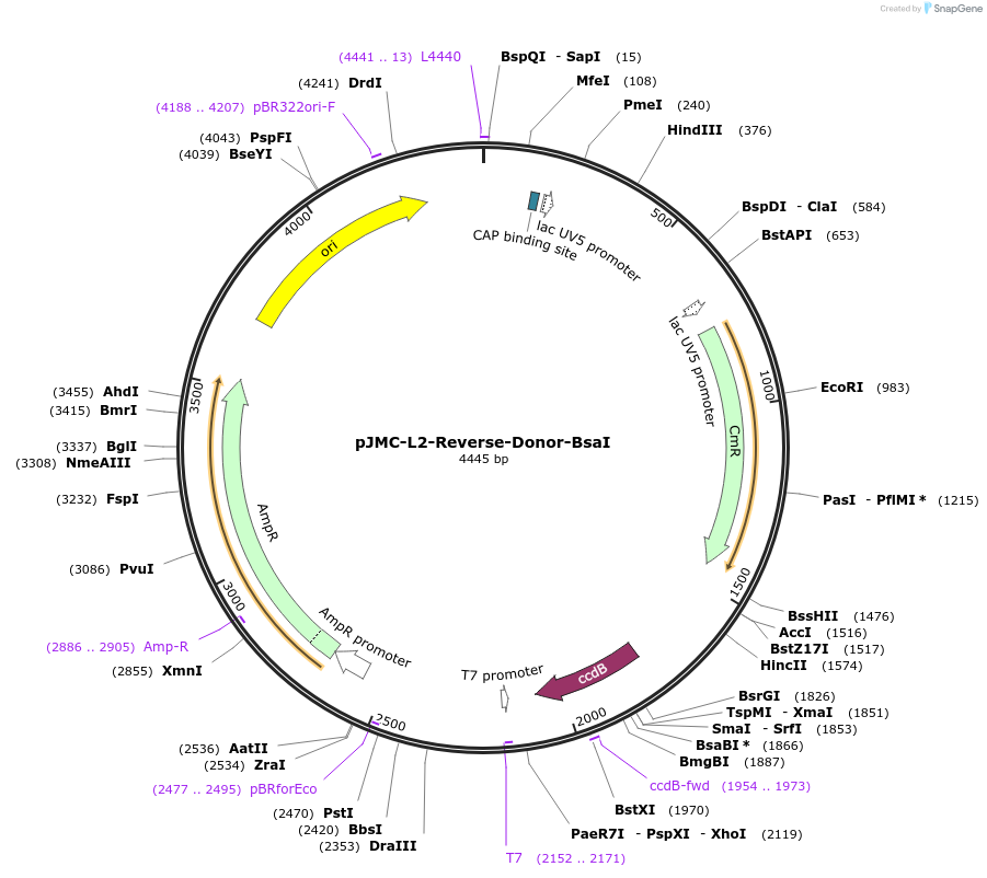 PurposeDonor vector to restore L2 destination via BsaI (reverse orientation)